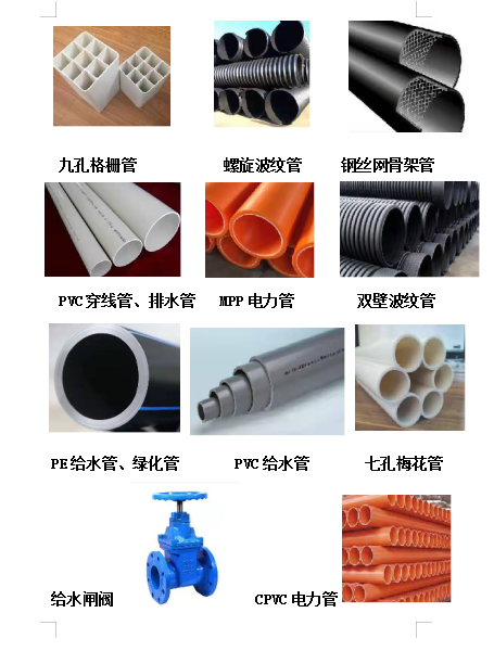 包头市政管理局民主路改造工程排水管道材料92万、岱海电厂给水工程管道1700万、集宁冷山糖厂供水管道510万、呼市伊利健康谷排水及电力管道260万。大青山绿化管道及阀门供应。G6京藏高速呼市至包头段绿化管道供应。包头市东河区青山区老旧小区改造项目排水及电力管道供应等。