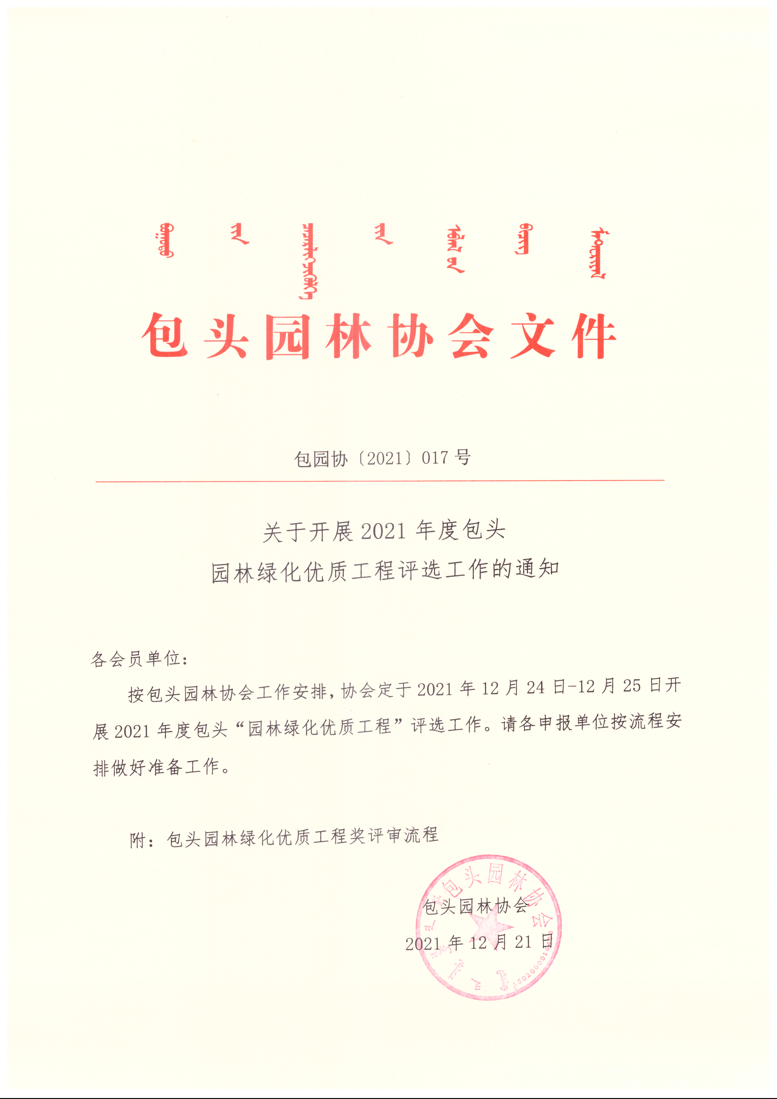 关于开展2021年度包头园林绿化优质工程评选工作的通知