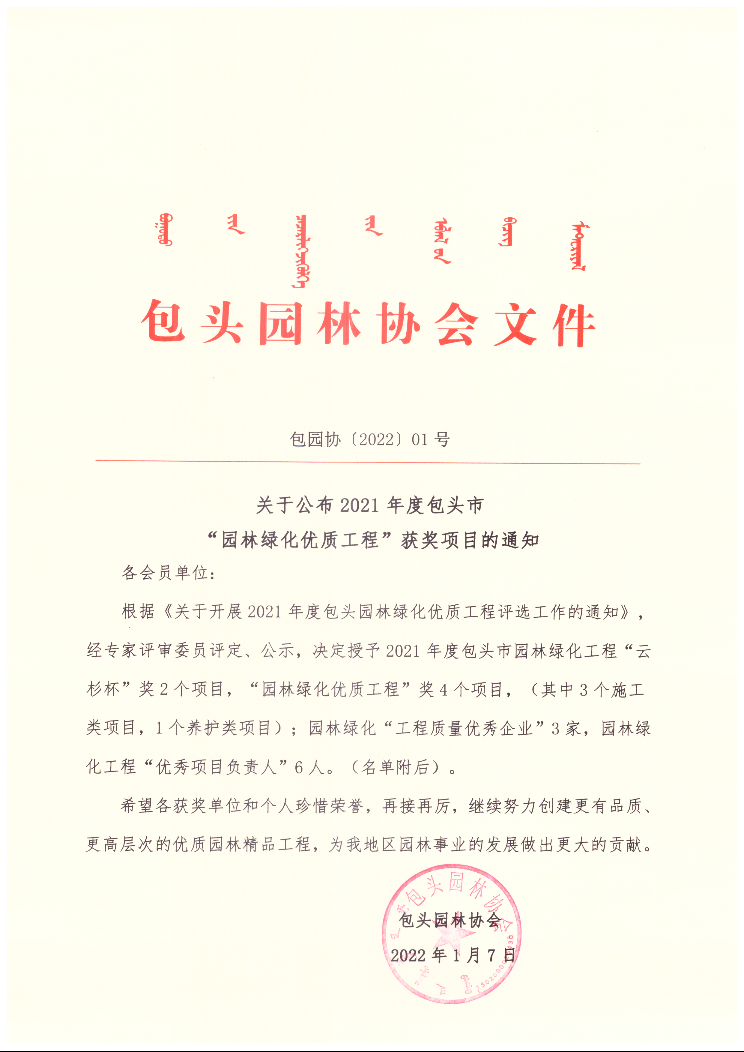 上一篇: 关于内蒙古中西部地区园林苗木标准意见征求的通知 包园协〔2022〕02号