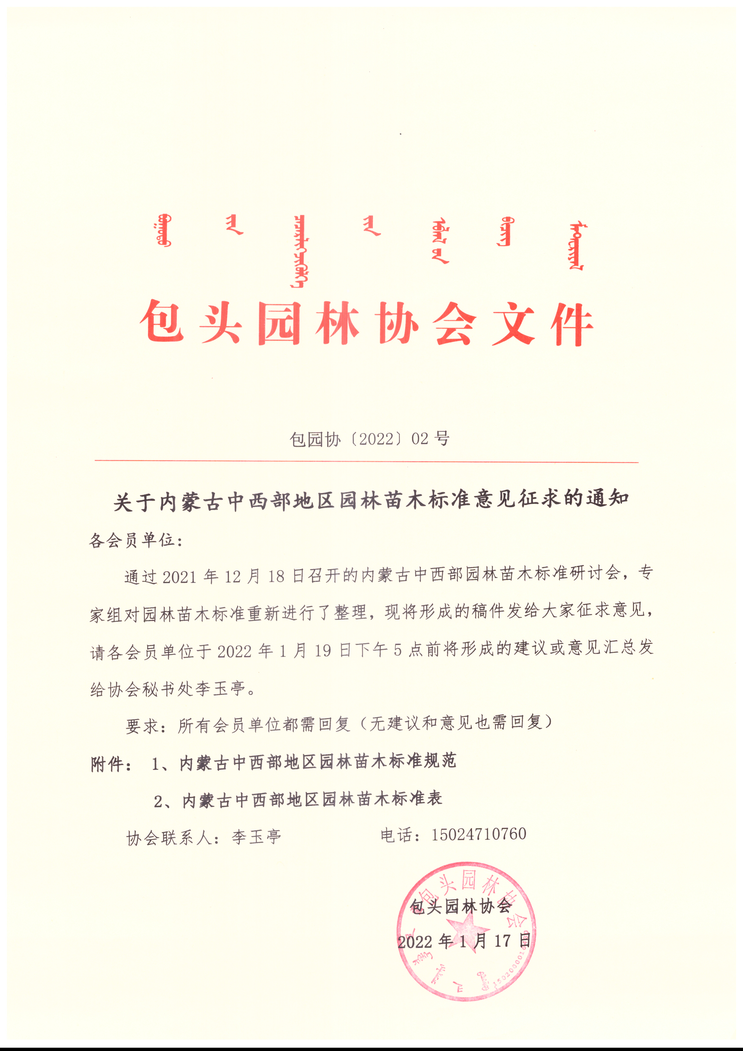 关于内蒙古中西部地区园林苗木标准意见征求的通知