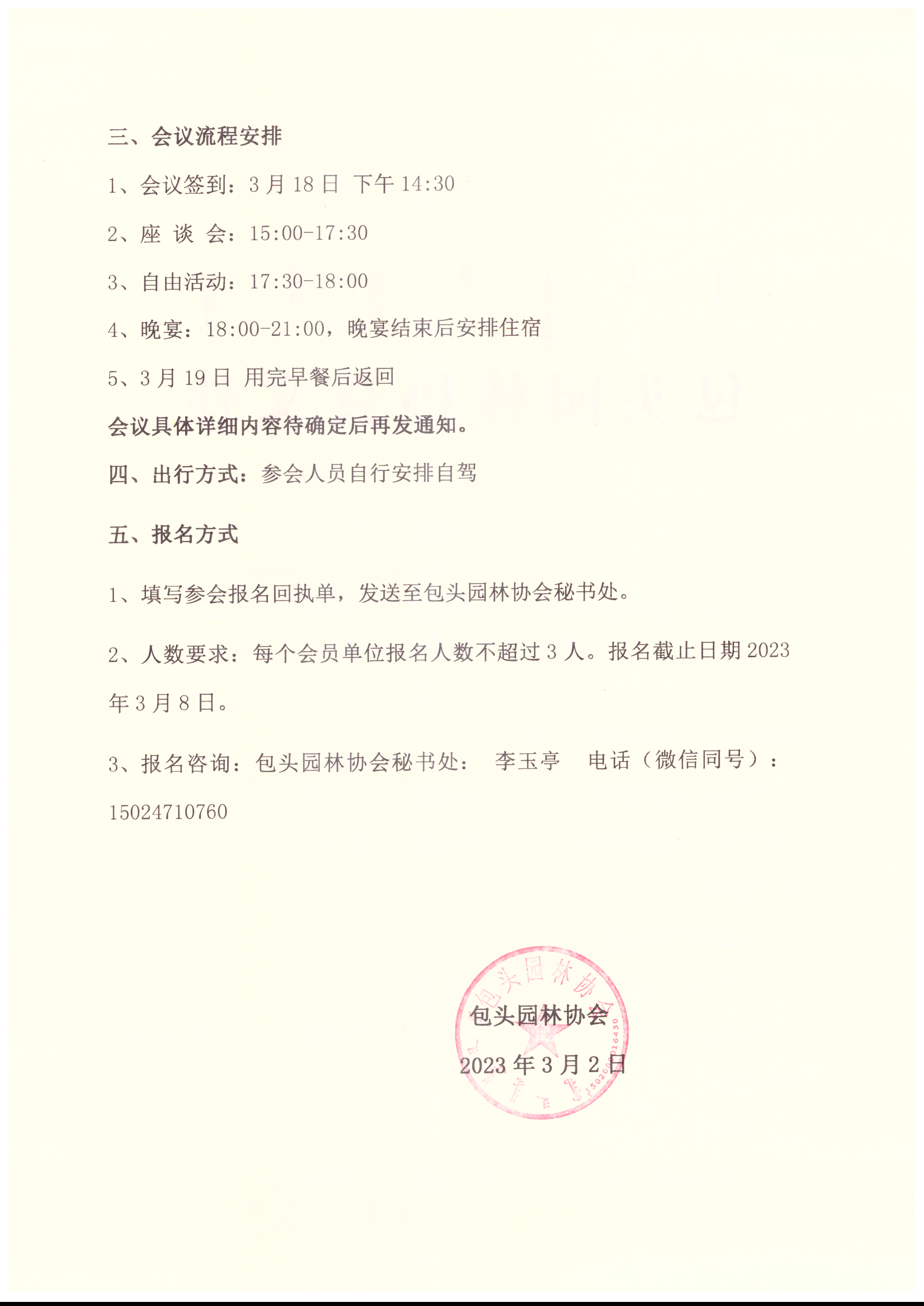 关于召开包头园林协会第四届三次全体会员大会暨2022年年会的通知 包园协(2023)01号