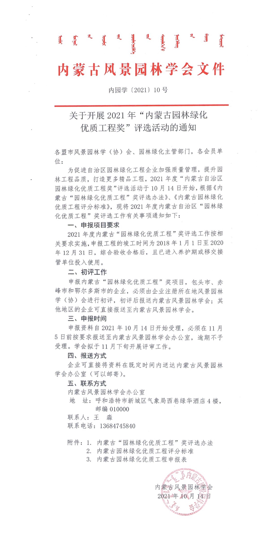 下一篇: 转发关于开展2021年度内蒙古园林绿化企业信用评价的通知